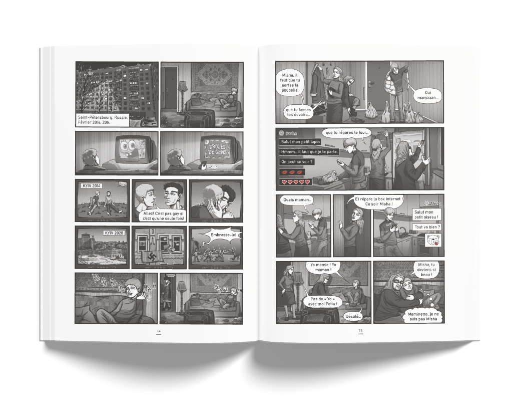 À travers ce livre, nous découvrons les histoires dessinées par des artistes engagés, dont la voix s’élève contre la guerre en Ukraine et le régime politique en place en Russie. Réunies dans cet ouvrage pour leur qualité artistique et les messages qu’elles véhiculent, leurs œuvres sont ici traduites et présentées au public français pour la première fois sous forme imprimée.